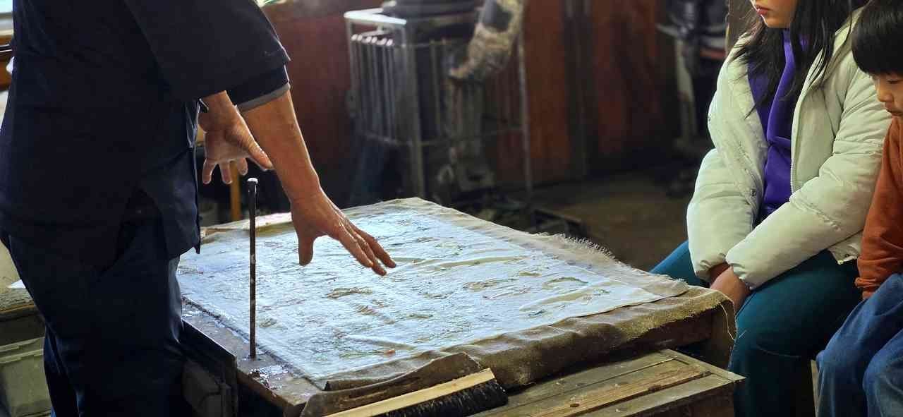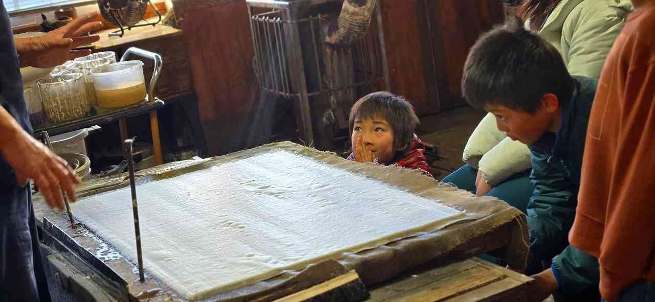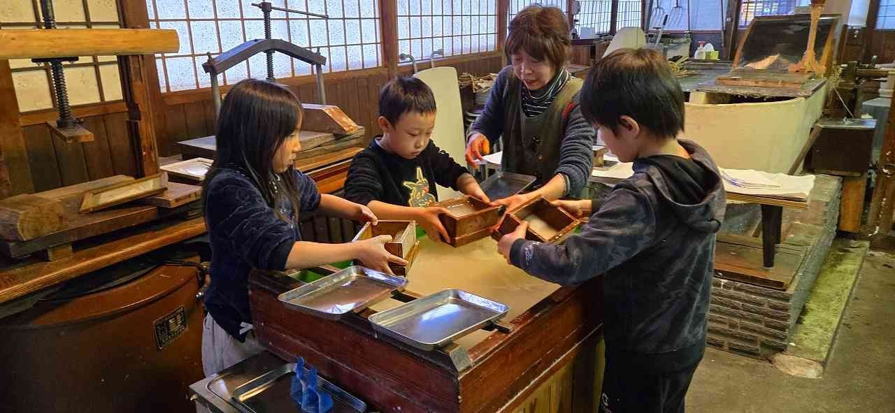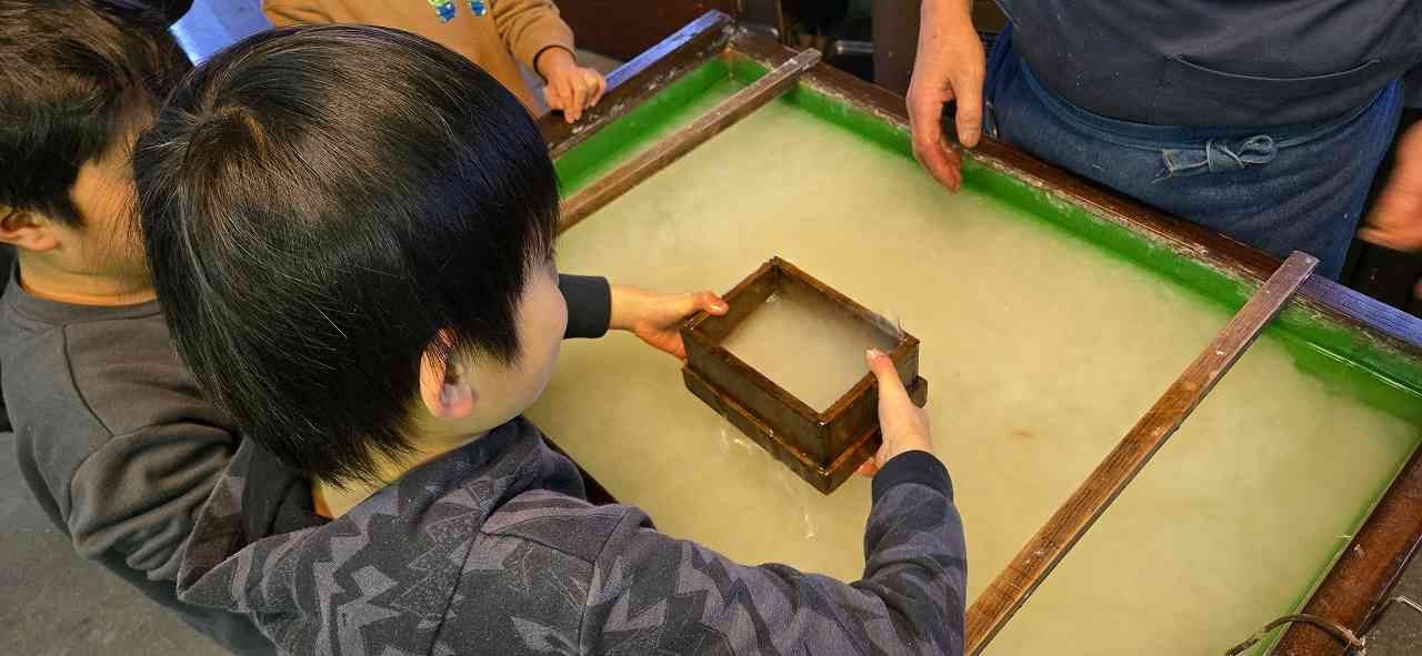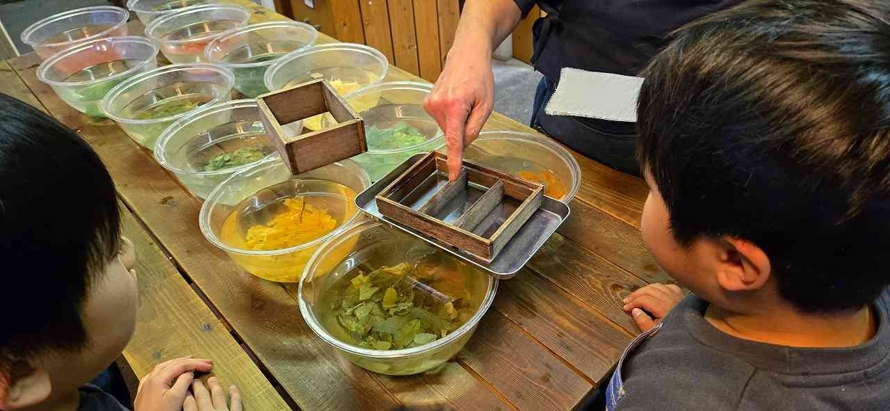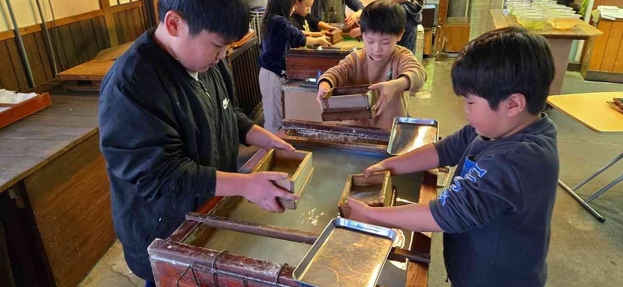 紙がどうやって生まれたのか、和紙とは何なのか、そしていざ自分で紙漉き体験に取り組んでみるという活動を行いました!