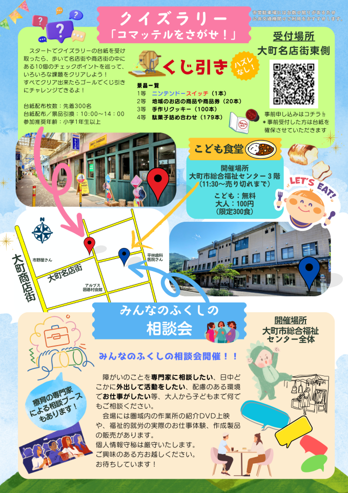 🎯メインイベントであるクイズラリーでは、くじ引きで任天堂スイッチや地域の商品が当たります!