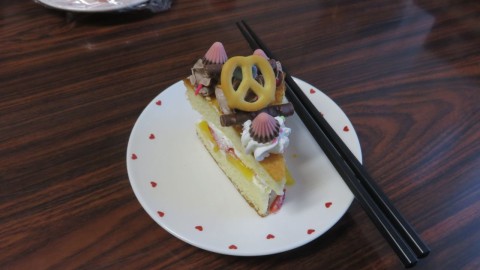 ホールケーキにみんなで協力してクリームやフルーツを乗せ、一人分ずつカットしたら思い思いにデコレーション✨