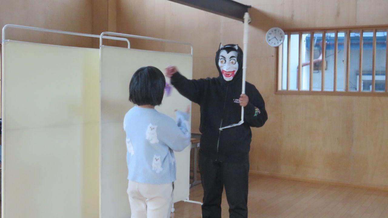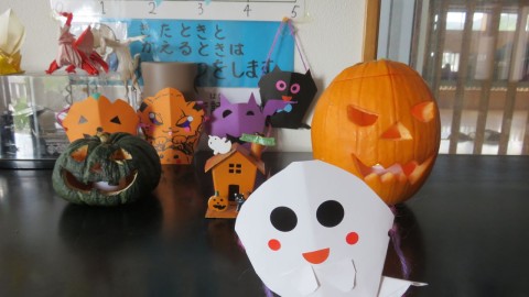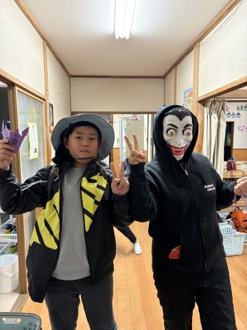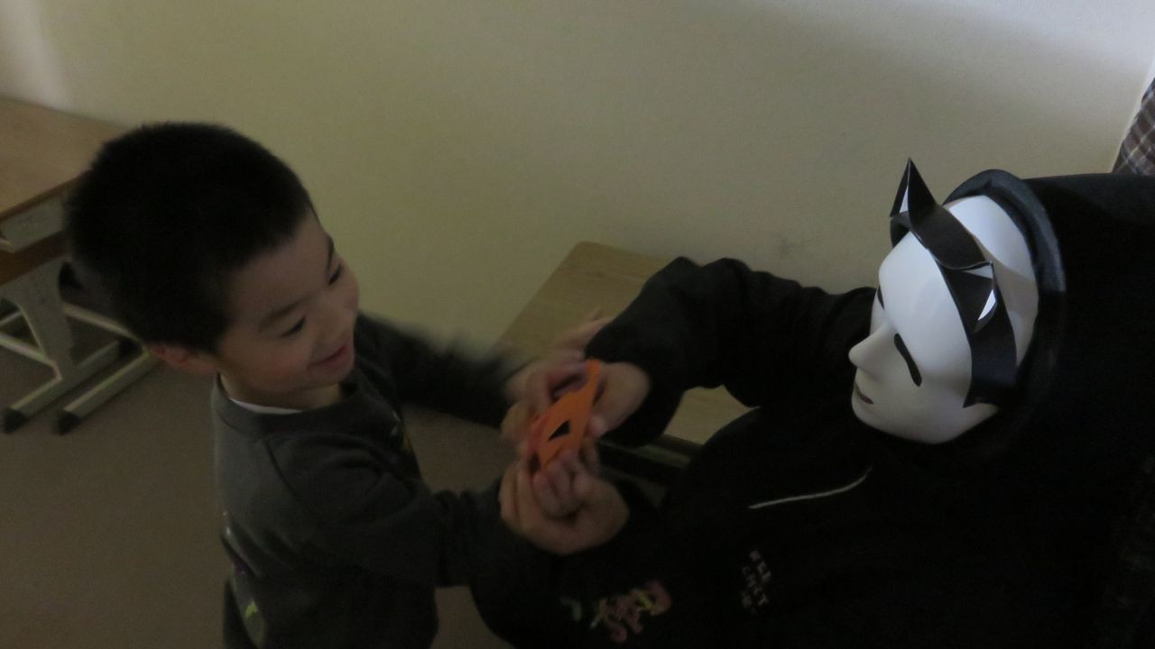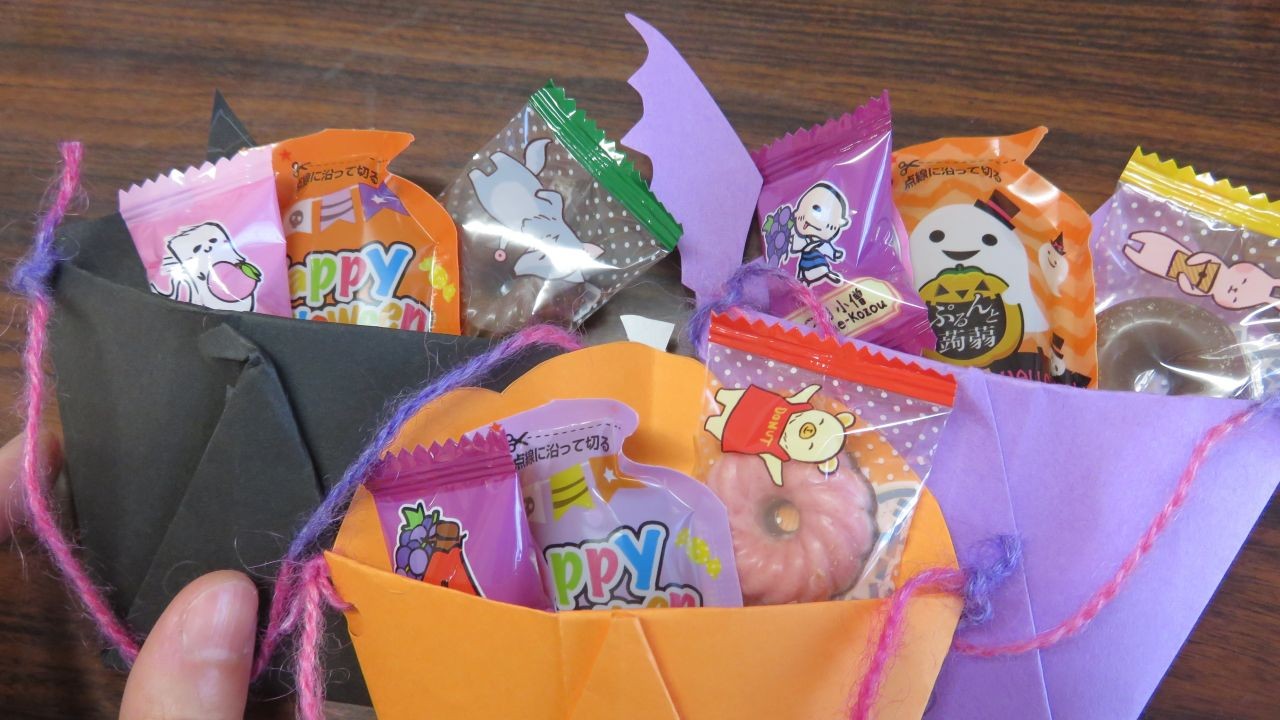 怖がりながらも「トリックオアトリート!」「お菓子くれなきゃいたずらしちゃうぞ!」「お菓子下さい…!」と頑張ってお話をして、無事お菓子をもらえました!みんなよく頑張りました😊