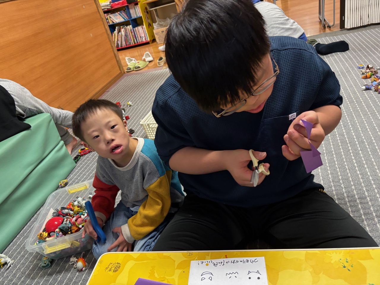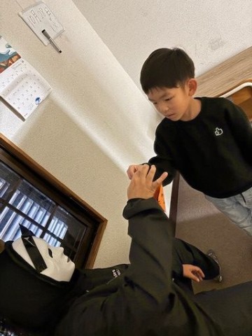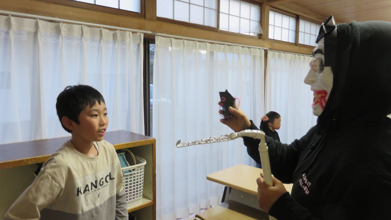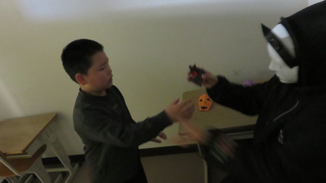 怖がりながらも「トリックオアトリート!」「お菓子くれなきゃいたずらしちゃうぞ!」「お菓子下さい…!」と頑張ってお話をして、無事お菓子をもらえました!みんなよく頑張りました😊