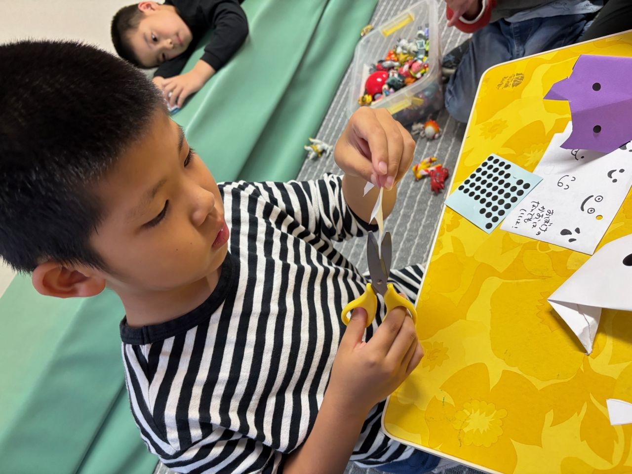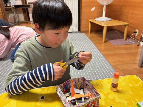 ハサミで切ったりシールを貼ったりして、上手にできました😊