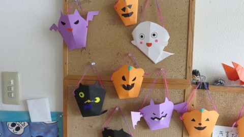 今年作ったのはカボチャ、黒猫、こうもり、おばけのお菓子バスケット🍬
